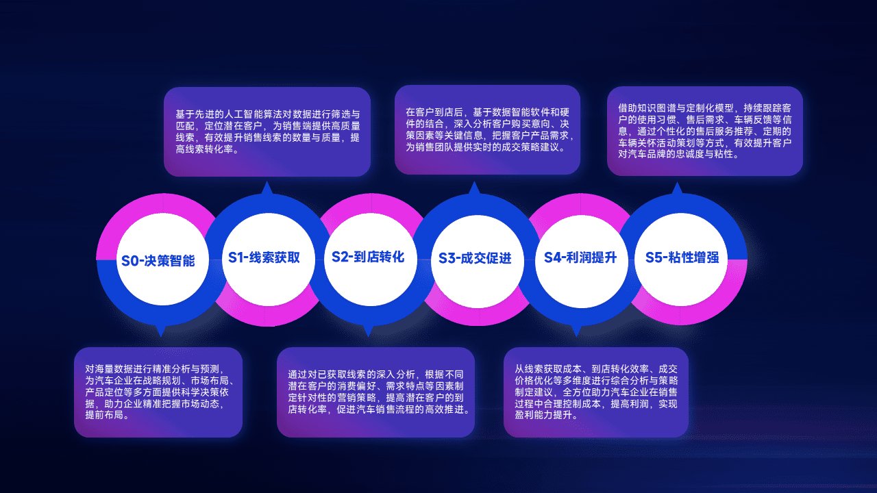 通过拓宽潜在客户来源、、、优化线索分配并提高到店转化率,,,以增强销售效率。。。。同时,,,利用线索数据不断优化分析模型,,,,有效提升转化率,,扩大营销影响力。。。。